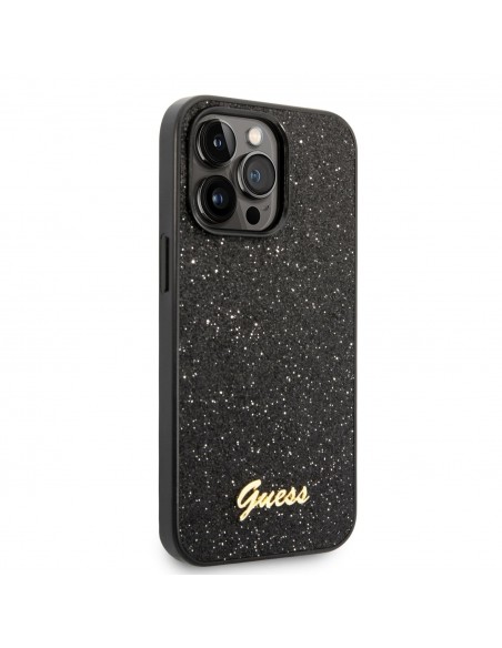 Guess PC/TPU Glitter Flakes Metal Logo Zadný Kryt pre iPhone 14 Pro Black