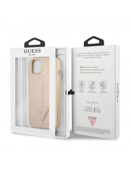 Guess Saffiano Double Card Zadný Kryt pre iPhone 13 Beige